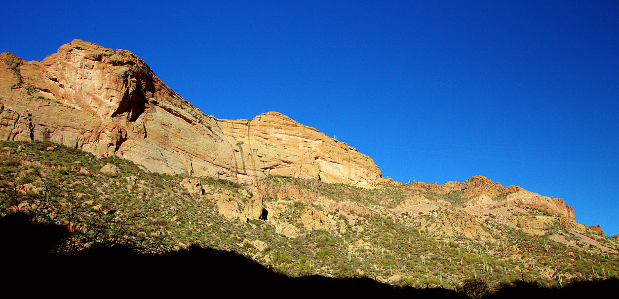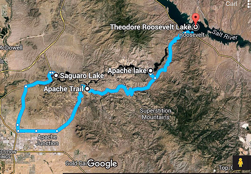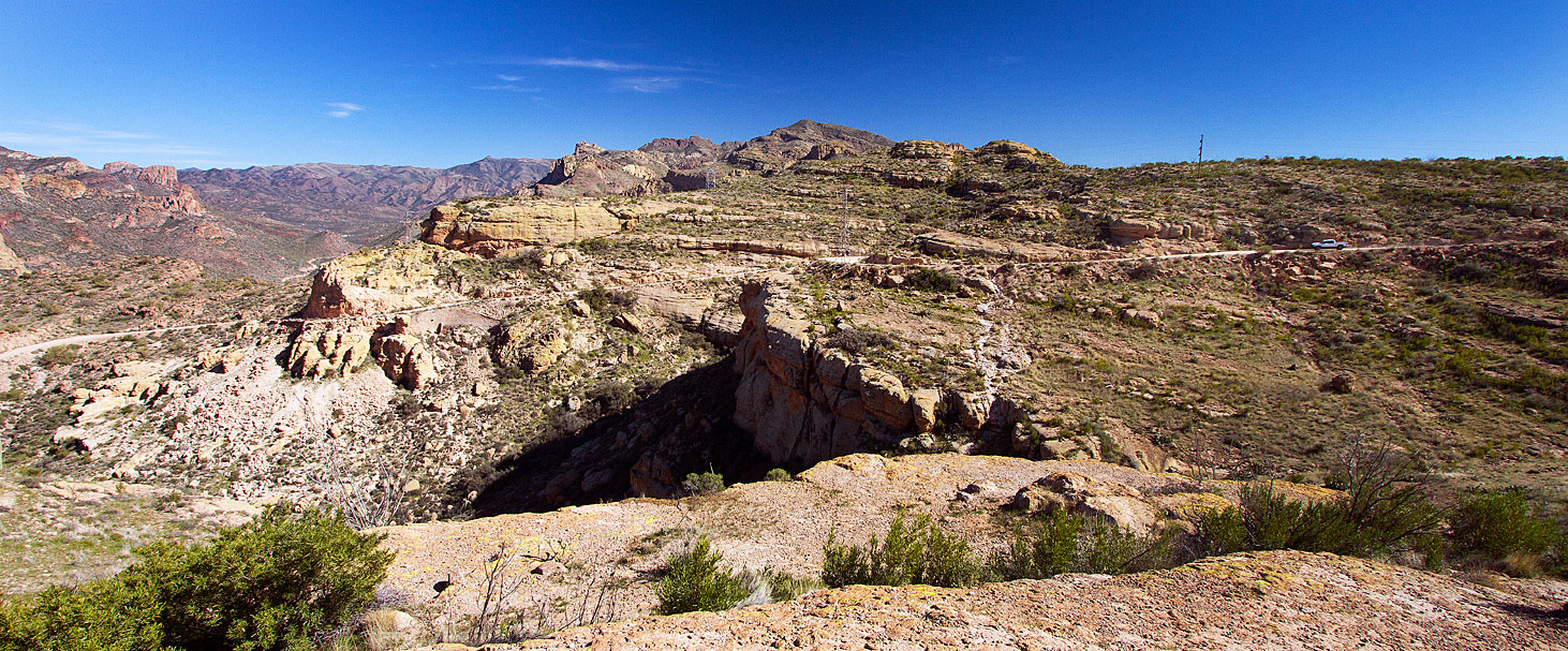 The road between Mesa and Roosevelt is known as The Apache Trail. Twenty miles of that road at the Roosevelt is winding and dramatic.