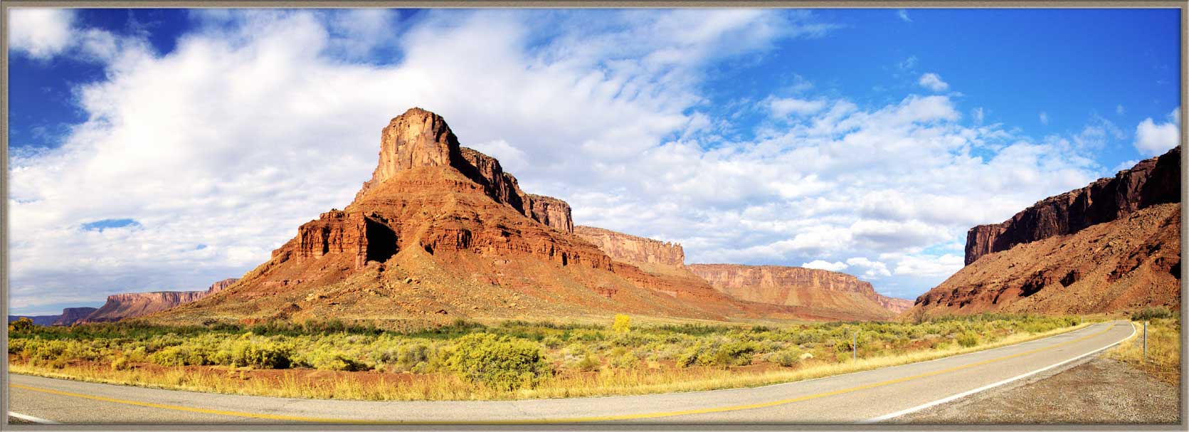 A short drive southward on Rt. 191 is a paved road which is well-marked for the Needles Overlook. A few miles along that road, a dirt track takes off to the right (North) and after several miles delivers you to the spectacular Anticline Overlook. When the morning sunlight pours over your shoulder into the vast valley, photographs and videos are hard-pressed to even suggest the colossal scale of the scene. As they say, you actually have to stand there and see it to believe it.