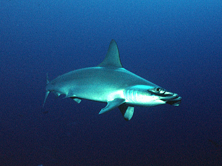 There are also schools of hammerheads in deeper water, and we have even seen a school of silky sharks coming roaring in at us on one occasion.