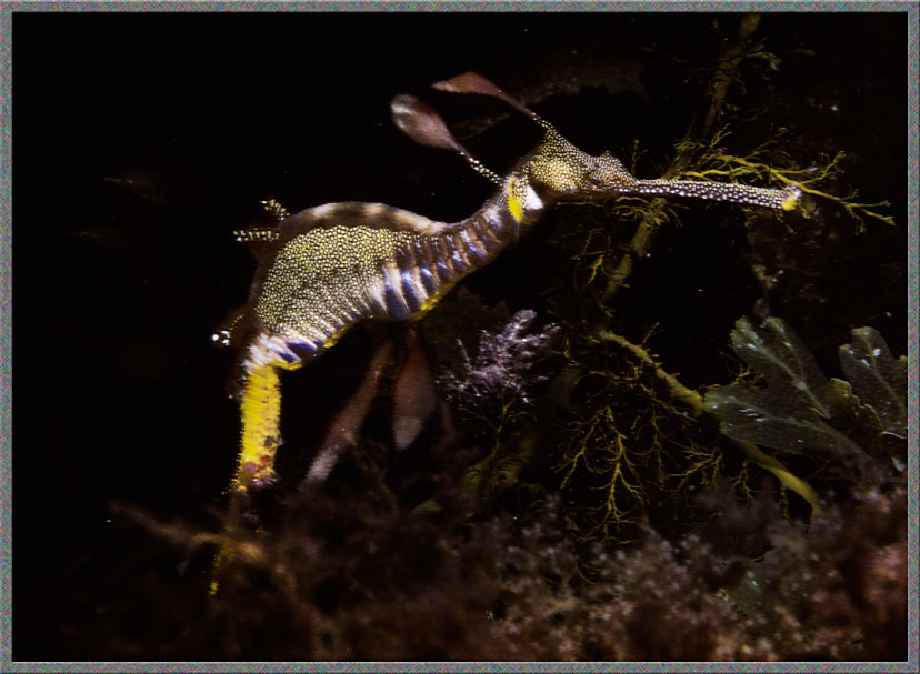 Jim only had a small boat for six divers, but he sated their appetite for diving. And what a spotter of sea dragons! I can remember Jim pointing at a leafy sea dragon camouflaged in the bull kelp that waved gently in the waves. “Where?” I’d say. He’d go closer and point. “Where?” I’d say. It was ugly, at least until you learned the dragon’s tricks to disappear into the surrounding life.